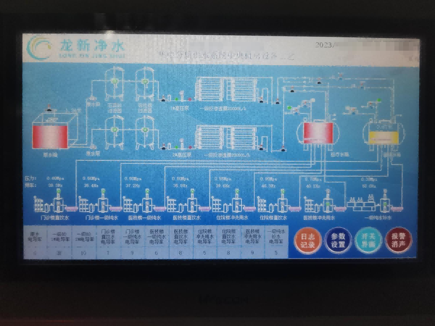 該項目龍新凈水根據醫院不同科室使用的水質要求,先采用二級反滲透技術,再采用后續處理如EDI和超濾技術等。把按科室需要的純水通過專用不銹鋼管網輸送到檢驗科、病理科、手術室、消毒供應中心、血透室、內鏡中心等。達到水資源綜合利用,節水節電,減少醫療設備用房,提高醫院信息化管理水平和效益。